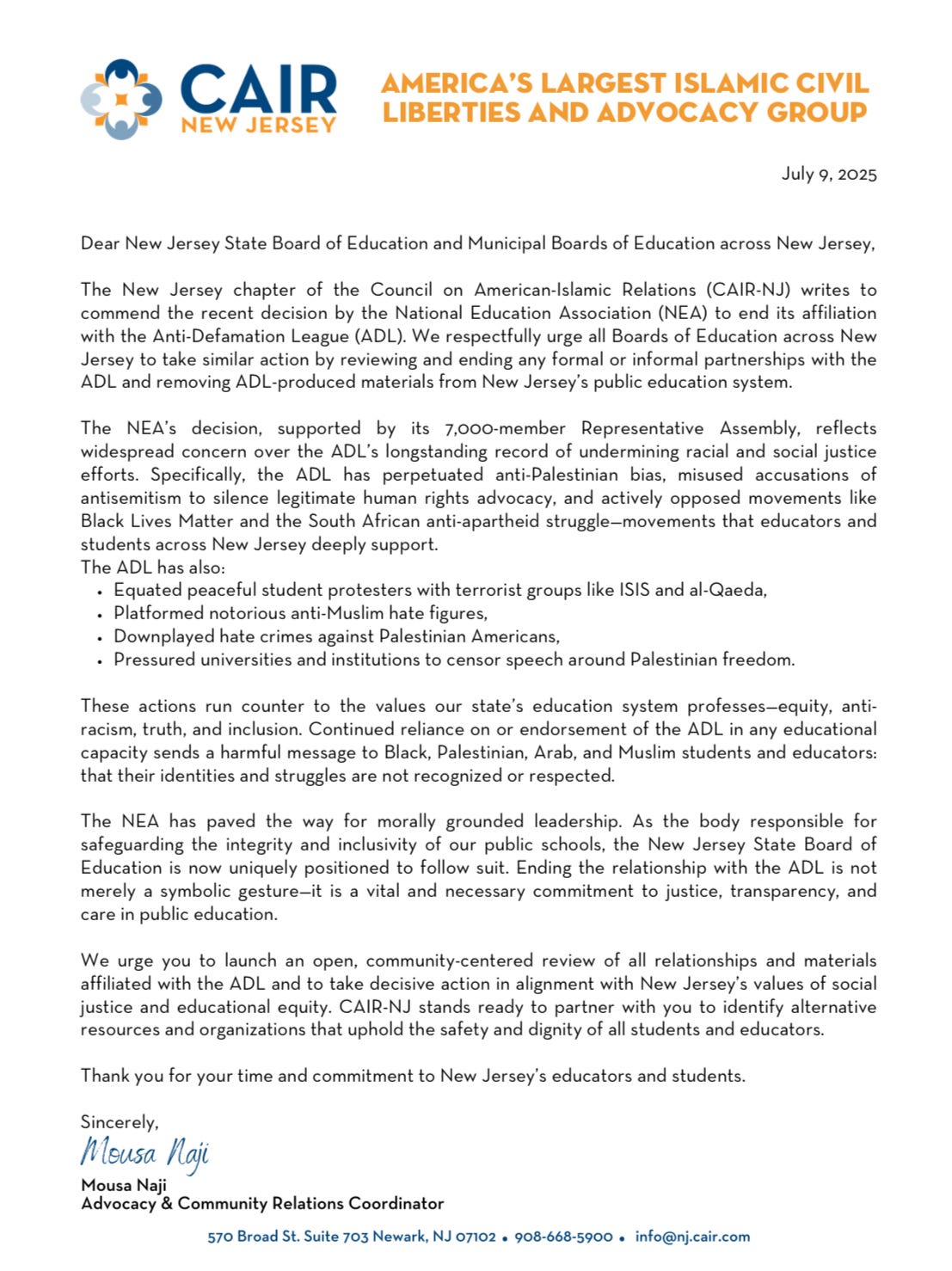 They should treat CAIR-NJ’s letter with the same urgency as junk mail and more suspicion than a phishing email.